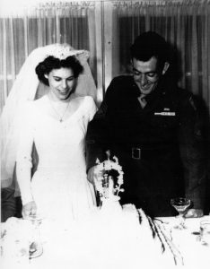 who was a Sergeant in the Marine Corps Women’s Reserve. They were married at St. Mary’s Star of the Sea Church in Oceanside, California, on July 10, with a reception at the Carlsbad Hotel. They honeymooned at an onion farm near Portland, Oregon.