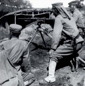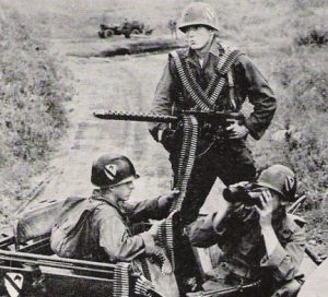 As the battle went on, ammunition became critically low. Despite their supply lines’ having been cut off by enemies in the rear, Basilone fought through hostile ground to resupply his heavy machine gunners with urgently needed ammunition.