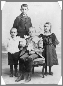 son of Adisson James Beebe and Ida Elizabeth, born Hamblin. Brigadier General Lewis Beebe as a child with his siblings. Left to right Lewis, Vincent (standing in back), Carrol, (seated) and sister Divida, approx 1895.