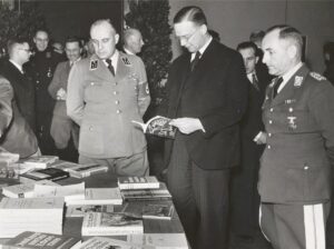 during a screening of the Italian film “Alcazar” at the City Theater in Amsterdam. Next to him, in uniform, is the commander of the Luftwaffe in the Netherlands, Generalleutnant Hans Siburg.