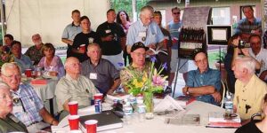 and in picture two can be seen sitting on the far right, with Robert “Red” Wright, looking on as George Luz