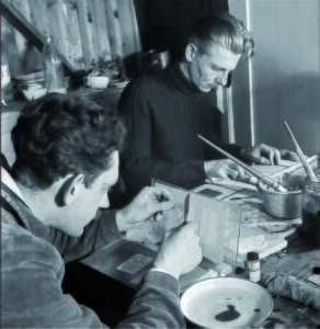 Maarten van Gilse (left) and Walter Brandligt (right) busy forging identity cards