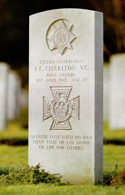 , it was the last VC of the European theatre and the last, so far, awarded to a member of the Irish Guards. Ed Charlton, age 24, is buried on the war cemetery of Soltau.