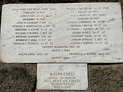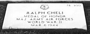 Initially he was believed killed in the crash, but post war evidence indicates that he survived the crash but was executed in March 1944 by the Japanese while a POW on Rabaul. For his actions, he posthumously received the Medal of Honor. What are believed to be Major Cheli’s and other similarly executed POWs remains are now interred at Jefferson Barracks National Cemetery in St. Louis, Missouri.