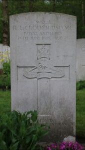 Ronald Lionel “Ronnie” Crouch, was buried first at the Allied Cemetery Margraten, Netherlands and reburied 01-05-1947 to Overloon War Cemetery. Vierlingsbeekseweg 57, 5825 AT Overloon. Section Field IV. A. 8.