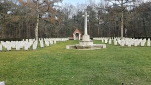 It is around 9:15 p.m. on 26-06-1945, when Ronald returns from Belgium with his Jeep and approaches the Dutch border post Neder-Canne from the Belgian border village of Kanne as Major Ronald Lionel “Ronnie” Crouch died at the age of 28, after being shot by a Dutch sentry while driving a car at a speed of about 50 mph. For a reason only Ronald knows, just before the border post, he suddenly accelerates his Jeep and races across the border at over 60 kilometers per hour! The soldier of the Military Authority immediately fires a warning shot in the air. Ronald doesn’t react and drives on towards Maastricht! The soldier fires a second shot, aimed at the rear tire. The Jeep drives on! The soldier now fires a third shot aimed at the Jeep. But the Jeep disappears from view after the right bend in Cannerweg. Calm returns to the border post. But not for long. Because some time later, it turns out that Ronald’s Jeep has come to a slow, unintentional stop on the right side of the road just after the bend in Cannerweg. The last shot hit Ronald in the head. He died instantly.