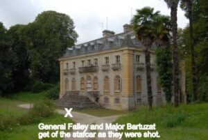 Falley was in his jeep with his driver his adjutant Major Bartuzat and riddled with bullets and they crashed against a wall.of his headquartes castle.