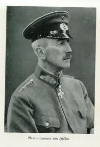 (20-04-1865 – 21-04-1950) was a German General. He was the son of Prussian Oberstleutnant Hermann von Hülsen (1816–1867) and his second wife Helene, born von Clausewitz. Walter von Hülsen (1863–1947), later General of Infantry, was his older brother.Hülsen married Magdalene von Schaper on 31-07-1896 in Berlin.On 26-12-1918 after World War I, Hülsen formed the Freikorps (von) Hülsen, a paramilitary unit