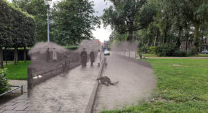 The resistance knew that Krist’s execution would not be without consequences. The Germans would take revenge for the attack on this important collaborator. That would certainly cost lives. During the last year of the war, the confrontation between the resistance and the occupier became increasingly grim. It was war, it was hard against hard. In that atmosphere, the decision had to be made. If Krist had been allowed to continue as he was, it would probably have led to the arrest and death of dozens of Jews and resistance fighters. The German revenge was not long in coming. Early in the morning of the day after the attack, two German military trucks stopped at the park behind the Sint Bavo. The civil servant Johan van Rijn saw it happen from his bedroom window. “A little later I saw five men handcuffed together jump out of one of the cars and then they were placed against the fence at the park.” A machine gun salvo rang out and the five men were dead. Five others suffered the same fate immediately afterwards. The ten men came from the prison on the Weteringschans in Amsterdam. The German lust for revenge had not yet cooled down. On the Westergracht, a block of four houses was set on fire. The residents had been chased from their homes and could not take much more than some clothes that they had hastily grabbed from the coat rack. Passers-by were forced to watch the Germans take revenge. Resistance fighter Truus Oversteegen was among them. She and others were arrested when they happened to pass by. Five men jumped out of one of the trucks, handcuffed. They were lined up in front of the fence of the park. When the rifles were put to their shoulders, an old man hesitantly began to sing the Wilhelmus, the Dutch national anthem. A machine gun salvo sounded and the men were killed. Five other men immediately suffered the same fate.