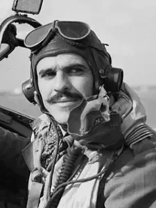 This pilot has taken part in twenty-two operations over enemy territory during which he has destroyed two enemy aircraft and damaged several others. His keenness and devotion to duty have set an excellent example. — London Gazette, No. 35241, 08-08-1941.