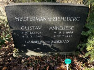 Heisterman von Ziehlberg Gustav Dietrich Adolf, age 46, who was married to Anneliese von Tschischwitz (1908–1995), daughter of Margareta von Steinbach and Erich von Tschischwitz, from 1928 and had four daughters and a son with her, was executed on 02-02-1945 by a Wehrmacht firing squad