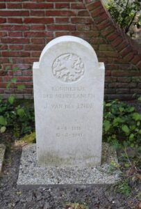 of which Jan Kijne was also a member. However, it didn’t stop at distributing pamphlets. During so-called training marches, the long-distance hikers committed the first acts of sabotage by cutting telephone wires of the German antiaircraft guns in the meadows in the area. Jacob ” Sjaak” van der Ende was arrested on 28-11-1940, and sentenced to death in March 1941 in the Geuzen Trial. Sjaak was one of the 15 Geuzen and 3 February strikers who were executed on 13-03-1941.