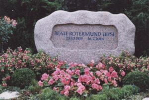 In 1983, Uhse was diagnosed with stomach cancer, for which she was successfully treated. Beate died 16-07-2001, age 81, in Sankt Gallen, Zwitserland.and is buried at the local cemetery of Glücksburg. Bahnhofstrasse 15 2469 Glücksburg, Germany.
