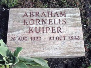 Bram.” Abraham Kuiper was shot by the Germans on 23-10-1944, age 21. He was buried as his brother Sape who was shot on 01-10-1944, age 19, at the the Bloemendaal Cemetery of Honor. CH2H+6C, 2051 EC Bloemendaal, Netherlands.