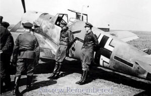 On 23-07-1941, he claimed six Spitfires shot down in one day, an “ace-in-a-day” achievement, taking his total to 21 aerial victories. For this, Leie was awarded the Knight’s Cross of the Iron Cross (Ritterkreuz des Eisernen Kreuzes) on 01-08-1941. He received the award from Feldmarschall (Field Marschal) Hugo Otto Sperrle with fellow JG 2 “Richthofen” pilots Leutnant Egon “Connie” Mayer and Oberleutnant Rudolf “Rudi” Pflanz  on that day. The triple award presentation was recorded by the Deutsche Wochenschau (German Weekly Review), a newsreel series released in the cinemas. By the end of 1941, his total stood at 32 aerial victories. His 32nd claim was a Handley Page Halifax heavy bomber shot down on 30 December in the vicinity of Brest. On 26-01-1942, Leie claimed a Spitfire shot down south of Rame Head. The Spitfire was piloted by Kazimierz Kosinski from the No. 302 Polish Fighter Squadron who was killed in action on a shipping reconnaissance mission that day.
