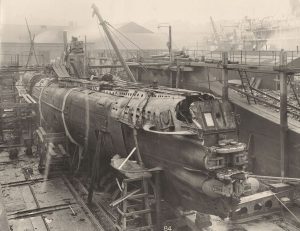 Flanders Flotille, here being repaired at Swan Hunter’s dry dock in 1918, commanded by Kapitänleutnant Werner “Fips” Fürbringer,
