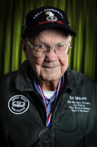 Mauser spent his time there securing homes and farms and enjoying the beauty of the area in the absence of combat. Later, in Kaprun, Austria, Mauser was awarded the 85 points he had earned and shipped back to the states. On 17-09-1945 he was discharged from the army in Chicago. Today, Mauser enjoys his retirement, proud of the fact that he is the oldest survivor of Easy Company at age 94. Ed Mauser, One of the famed ”Band of Brothers,” 101st Airborne, Ed was a decorated veteran, always humble and as he said, ”just one of the guys.” He was always an inspiration and a good source of historical information.