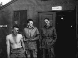 , clad in his regular fatigues. He endured the “toughest” battle of the war, “thanks to good fortune and the brotherhood that was Easy Company.” He reports being blessed by having a foxhole complex built by “someone who knew what he was doing.” The sturdy structure with a roof saved his life. Mauser vividly recalls the breakout battle at Foy.
