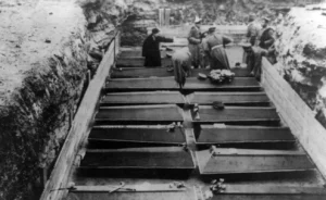 At 10:00 am Kube left for his job while his older children attended school. Anita and her youngest child went on a shopping trip, leaving only Mazanik and one other servant in the house; she then entered Kube’s bedroom and planted the small bomb under his bed between the mattress and springs. At about the same time Mazanik’s family were leaving the city for the forest. After planting the bomb Mazanik left the apartment, saying she was going to go to the doctor for a toothache. At 1:20 am on 22-09-1943, the bomb under Kube’s bed went off forty minutes early, killing him. His pregnant wife was not hurt because she had been sleeping in a different bed at the time. A truck had evacuated Mazanik from Minsk and she was never apprehended by the Nazis, but over 1,000 people in Minsk were forced to dig their own mass grave and were shot in collective punishment inflicted on the city.