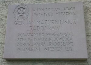 Jan Mazurkiewicz, pseudonym: “Zagłoba”, “Socha”, “Sęp”, “Radosław” passed away 04-05-1988 (aged 91) in Warsaw, Polish People’s Republic and was buried at Powązki Military Cemetery. His funeral was attended by representatives of the highest state authorities, including Generals Wojciech Jaruzelski