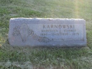 After 1956, he was active in the veterans’ right activism. From 1964 he was vice-president of Society of Fighters for Freedom and Democracy. His wife Marcella Mazurkiewicz Karnowski, born 31-12-1896, passed away 20-04-1948 (age 51).