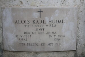 Alois Hudal (Graz, 31-05-1885 – Rome, 13-05-1963) was an Austrian bishop who served in Rome for a long time. After the end of the Second World War he operated a network of agents to help prominent Nazi leaders avoid prosecution. In 1947, Hudal was suspended by order of Pope Pius XII