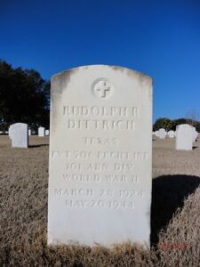 Dittrich, Rudolph Reinhold “Rudy” born 28-03-1924, in Muldoon, Fayette County, Texas, United States, to Anna C, born Ripper .and Ferdinand J. Rudy had one brother Otto Ferdinand Dittrich (1918–2008) Otto enlisted in the United States Army 01-06-1942 and served with the 81st Infantry Division nickname “Wildcat” under command of Major General Paul John Mueller