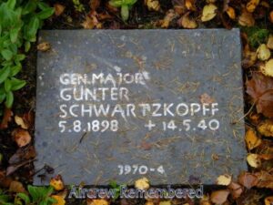 Schwartzkopff was buried at the German war cemetery at Noyers-Pont-Maugis. Posthumously, he was awarded the Knight’s Cross of the Iron Cross (Ritterkreuz des Eisernen Kreuzes) on 24-11-1940, and promoted to Generalmajor in June 1944, the promotion backdated to 01-05-1940.