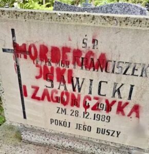 the commander of the firing squad). Before the shots were fired, they both could still shout: Long live Poland! Sawicki’s gravestone after the war was daubed with murder charges.