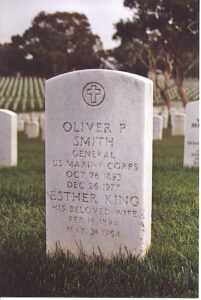 Smith, Oliver Prince, nicknames, “O.P.”, “the professor”, “student general” passed away in Los Altos, California on 25-12-1977, age 84. Oliver Smith is buried at Golden Gate National Cemetery, JHM8+8Q, 1300 Sneath Ln, San Bruno, CA 94066, United States.
