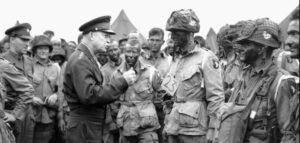 Strohl’s first combat jump was on D-Day. He was so overloaded that he could not put on a reserve chute. His plane got hit, and Strohl saw the pilots coming out with the paratroopers. Strohl linked up with Shifty Powers,