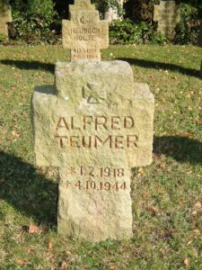 The unit was named after Major Walter “Tiger of Wolchowstroj” Nowotny and was tasked with testing the Me 262 under operational conditions. Teumer, who had received some training on the Me 262 at Rechlin, was killed in a flying accident on 04-10-1944, aged 26, in Hesepe near Osnabrückat Hesepe airfield. His Me 262 A-1a  had suffered engine failure during the landing approach. Alfred is buried at Bramsche ev.Friedhof St.Martin, Bad Iburg, Landkreis Osnabrück, Lower Saxony, Germany.
