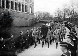 He was buried near the Ehrentempel (Honor Temples) which housed the remains of those killed in the Beer Hall Putsch.