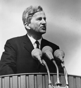 In it, he pointed out that 08-05-1945 was a day of liberation, addressed the suffering of those affected and the responsibility of future generations. In May 1989 he was reelected. At the ceremony the reunification of Germany in Berlin on 03-10-1990 Weizsäcker coined the words “to unite oneself is to learn how to share”. After his retirement from office he confirmed his reputation as a “political” President by holding a number of presidencies in various committees, lectured and continued to take a position on the current political debates. He received more than thirty prizes and medals, thirteen honorary doctorates and became knight of several orders. He is also honorary citizen of Bonn, Gdańsk, Stuttgart and Berlin.