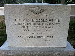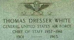 Thomas Dresser “Tom” White passed away 22-12-1965 of leukemia at Walter Reed Army Medical Center, Washington, DC at the age of 64. The Thomas D. White National Defense Award, presented annually to a US citizen who has contributed significantly to the national defense of the US, is named in his honor. In 2011 he was enshrined into the National Aviation Hall of Fame.