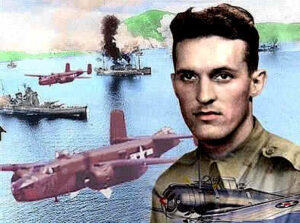 For conspicuous gallantry and intrepidity above and beyond the call of duty in action with the enemy near Rabaul, New Britain, on 02-11-1943. Leading his squadron in an attack on shipping in Simpson Harbor,