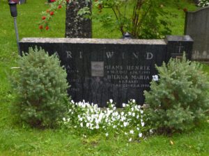 Wind died on 24-07-1995, age 75 in Tampere, Tampere Municipality, Pirkanmaa, Finland and was survived by his wife and five children. Hasse is buried at Kalevankangas Cemetery, Tampere, Tampere Municipality, Pirkanmaa, Finland, Section K 15, R 15, H 20. Teir is a Memorial stone of Hans “Hasse” Wind and Tor Robert Lindblad