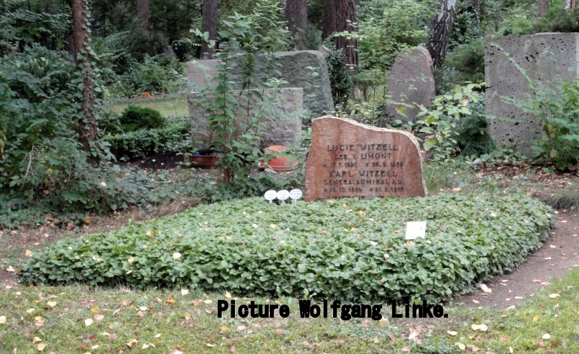 Living in Berlin Karl Witzell died at the very old age of 91 on 31-05-1976 and is buried with his wife Lucie, born von Limont, who died age 78 on 26-09-1966, on the Waldfriedhof Zehlendorf in Berlin, Field 22. Close by the graves of the Generalmajor der Wehrmacht, Inspector of Motor Vehicles, Friedrich Starke,
